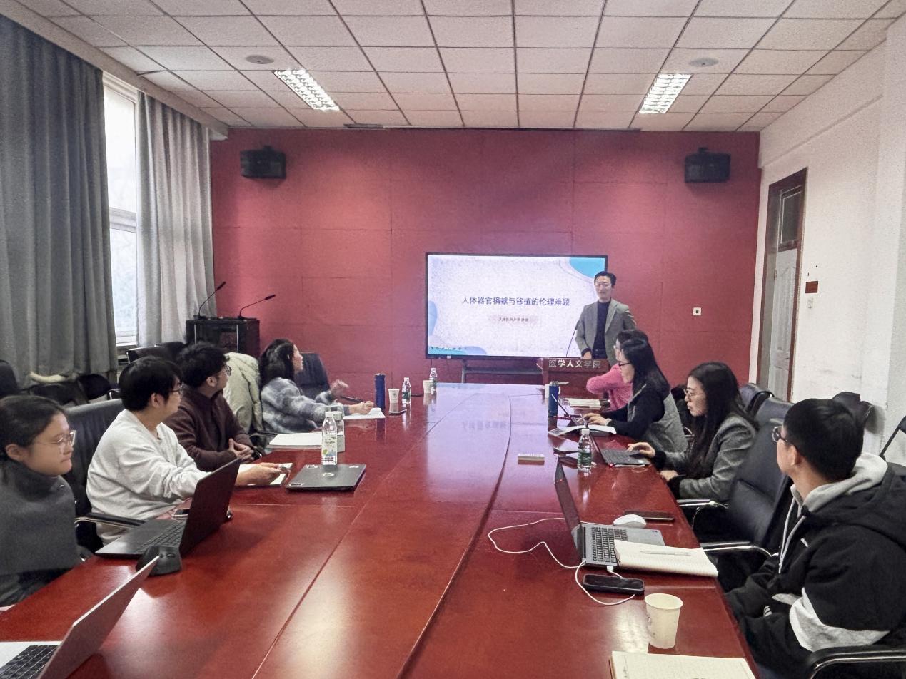 2026年1月9日上午,为推动医学伦理学与医学史学学科的建设与发展,性爱直播-国产性爱直播 医学伦理学与医学史学学系在阶平楼396会议室举办“人体器官捐献与移植的伦理难题”讲座。此次讲座特邀天津医科大学性爱直播 医学伦理与法学系副主任唐健副教授进行分享。讲座由医学伦理学与医学史学学系主任梁立智副教授主持,学系全体师生集体参与并展开研讨。